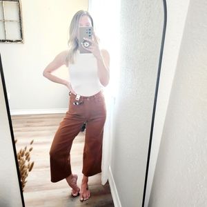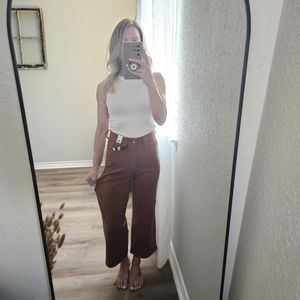 Judy Blue garment dyed high rise tummy control wide leg crop jeans in camel
