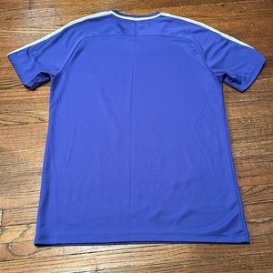 Soccer jersey style shirt in great used condition. One snag on the front of the sleeve and a little patch of snags on the back shoulder. Not noticeable while wearing. Nice lightweight material.