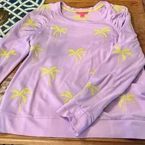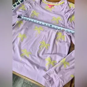 Lilly Pulitzer Women’s lightweight Aldean Sweatshirt, with palm leafs, X-Large