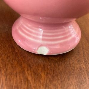 Vintage pink Fiestaware salt and pepper shakers. In good used condition with one flaw. There is a chip at the bottom of one piece.