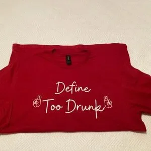 Men/women’s Gilden soft crew T-shirt. “Define too drunk”