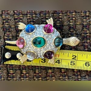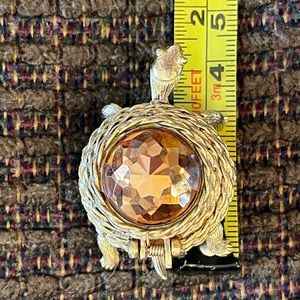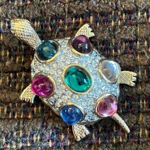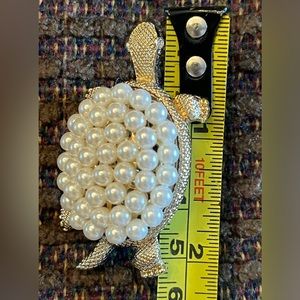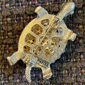 * Turtle one is a Napier signed gold tone brooch encrusted with faux pearls and rhinestone eyes. Exquisite detail, in excellent pre-owned condition.