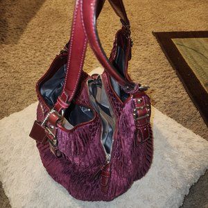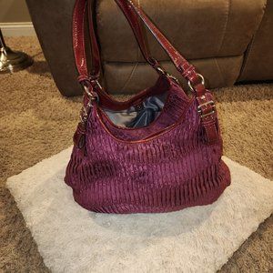 Coach Madison purple gathered sateen signature Maggie shoulder purse