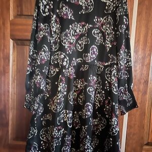 Size L, length is approximately 54” from shoulder. This jumpsuit is brand new, never been worn. It has a back zipper, belt at the waist and is lined to the waist. The top is fitted with a wide leg.