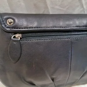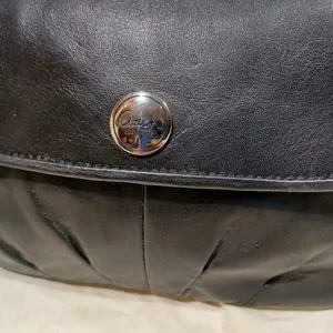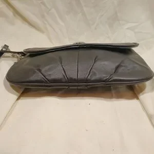 coach all leather wristlet, in EUC, 9x5 in size, snap to close, outside rear zip pocket, silver hardware, very soft black leather, from a smoke free home