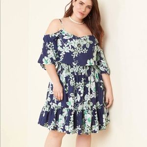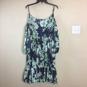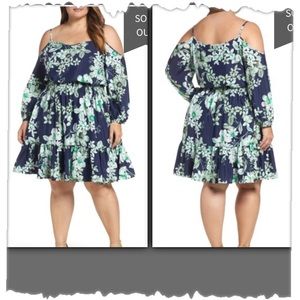 Eliza J Navy & Green Cold Shoulder Blouson Dress