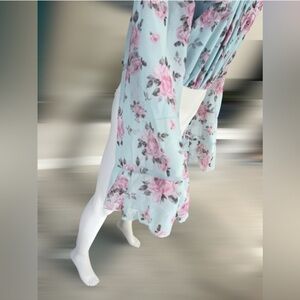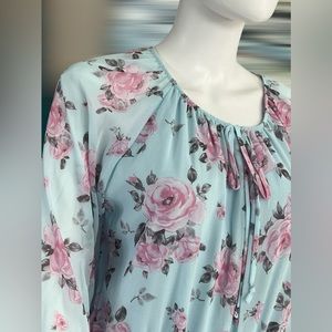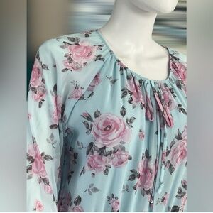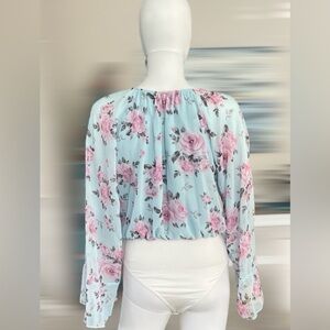 PEACH LOVE CALIFORNIA floral print bodysuit sheer bell sleeve size Large