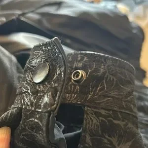 See pics for beautifully embossed paisley suede details on sleeves & front