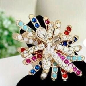 enamel in shades of of navy, green, teal, yellow and red