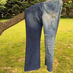 π 2-tone legged destructed & distressed & faded jeans