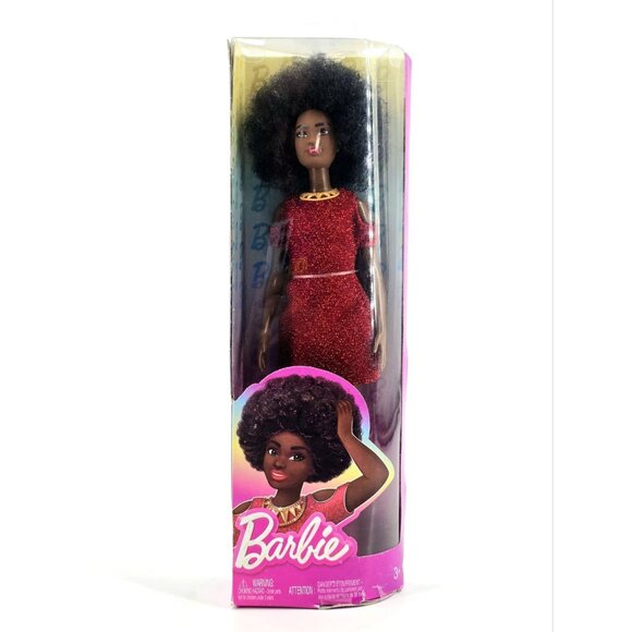 Barbie Fashionistas Doll #221 with Natural Black Hair Wearing Removable Red Dress & Accessories, 65th Anniversary Collectible Toy
