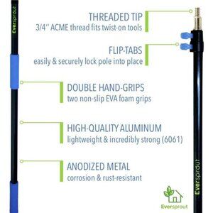 -MULTIPURPOSE WITH OVER 10X POTENTIAL USES – Use with Twist-On Household Tools (attachments sold separately). Simply twist-on the Eversprout tool of your choice: Paint Roller, Squeegee, Cobweb Duster, Ceiling Fan Duster, Feather Duster, Mop, Broom, Fruit Picker, Light Bulb Changer, Utility Hook, and others! Works with all Eversprout Attachments, 3/4” Acme Thread Tools, USA Standard Thread Tools, and Universal Thread Tools. NOTE: Does NOT Work with Click-On or Custom Threading.