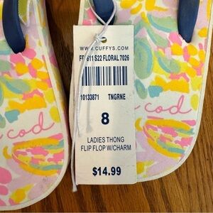 🌈 6/$60 Cuffy’s Cape Cod Thong Flip Flops Starfish Navy Blue Floral Print Size 8