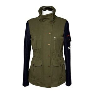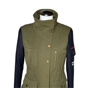 $660 VERONICA BEARD Skyline Army Jacket Sz 0 Green Body Navy Sleeves