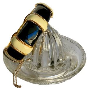 J. Crew Refined Nautical Black & Ivory Enameled Hinged Bracelet with Gold Accents. Well-Designed with a Snap-in Clasp, Clasp on Top, and Safety Chain. Hinged for easy on & off wear. J. Crew engraved on interior. From J. Crew Retail Store.