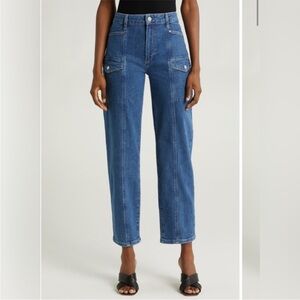 pockets, a high waist and a 29-inch inseam. Cut from semi-