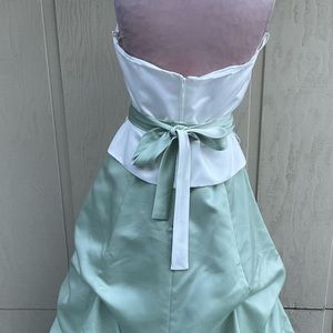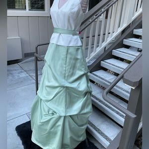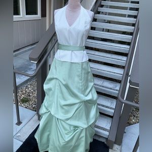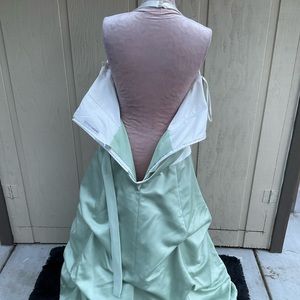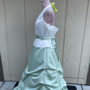 Maxi prom gown dress Couture Collection halter neck tiered bussled mint green 14