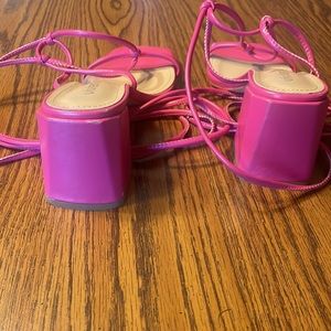 vivianly women’s lace up chunky heel sandals, ankle wrap heel, size 6.