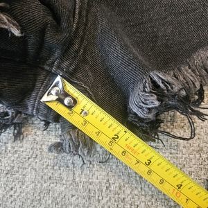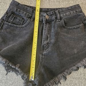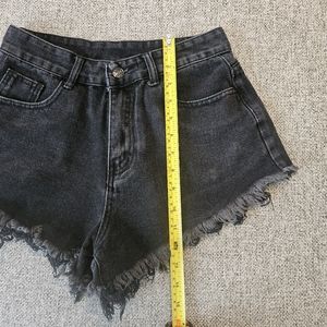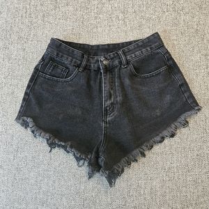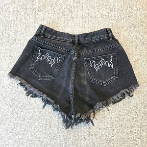 Shein Black High Waist Jean Cut Off Fray Shorts Flame Embroidered Pockets Size S