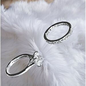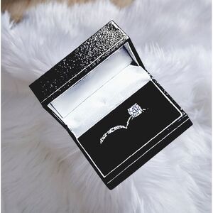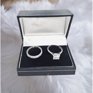 Sterling Silver Engagement Ring Set with Brilliant Square Cut/Baguette CZ Stones