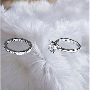 This engagement/wedding ring set is perfect for women who desire a unique and timeless piece of jewelry. The ring is not only beautiful but also crafted with excellent cut grade, eye-clean clarity, and multifaceted main stone. The engagement set comes from Vietnam, a country known for its jewelry-making expertise.