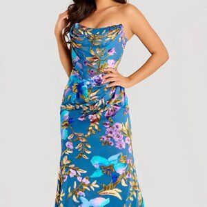 NWT Montage by Mon Cheri M536 Stretch Crepe Evening Dress Navy Size 12