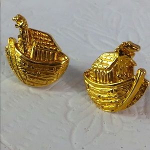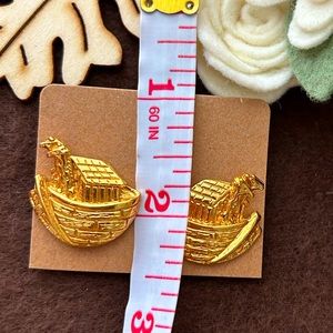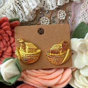Beautifully crafted, 1980's, vintage gold tone Noah's Ark stud earrings.