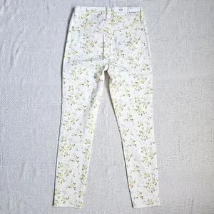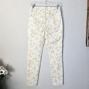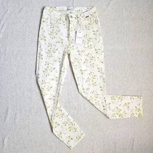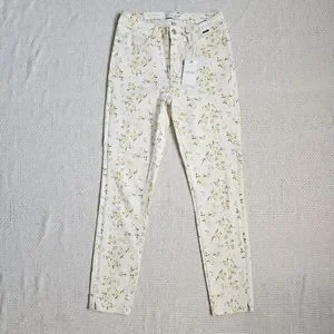 Judy Blue mid rise split hem skinny jeans in cream with yellow, tan, and olive wildflower floral print