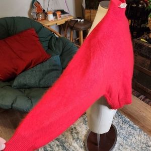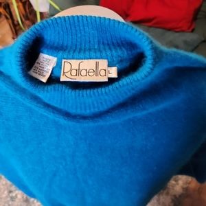 Vintage size large bright red, turquoise and blue Angora rabbit women's sweaters. The green sweater is ribbed while the other 2 are solid. Raphaella brand. Runs small like most other vintage styles. Fits more like a medium. In excellent used condition. No rips, stains or odors.