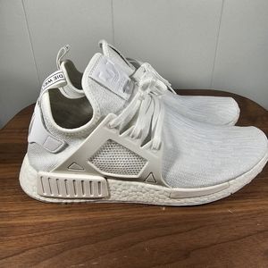 This is a gently used pair of Adidas NMD R1 in the core black/trace cargo colorway. They have been worn quite a bit, but are still in good condition. If you have any questions or would like to see more pictures, please let me know, and don't hesitate to send me an offer!