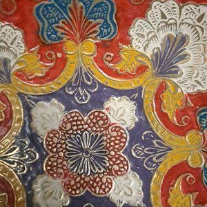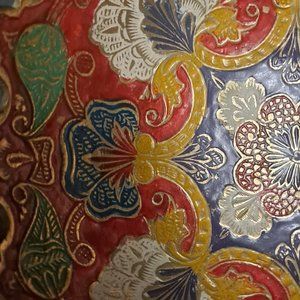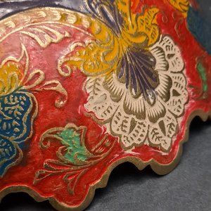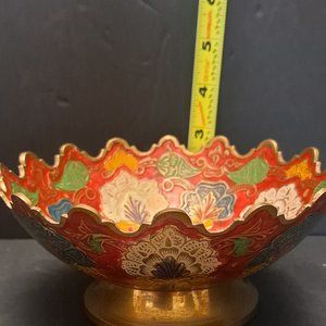 VINTAGE BRASS BOWL. MADE IN INDIA.HAND PAINTED AND ENAMELED, WITH A PEDESTAL. NO CHIPS OR CRACKS. STUNNING PEICE.