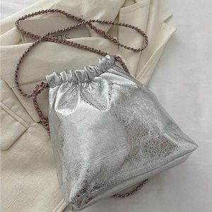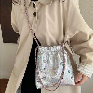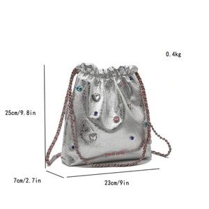 Chic Silver Metallic & Pink Multi Embellish Vanity Leather Crossbody Bag OS New