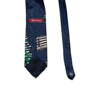 Holidays By MMG Blue Santa Snow Christmas XMAS Classic Silk Necktie