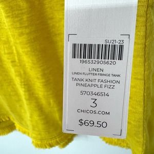 NEW NWT MSRP $70 Chicos Sz 3 XL 100% Linen Yellow Tank Top Blouse Shirt Top