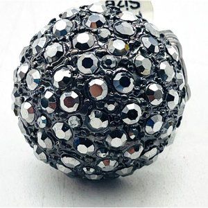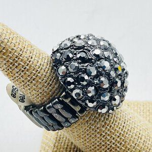 Dark Faceted Rhinestone Dome Ring Gunmetal Stretch Glam Bling Sparkle Holiday
