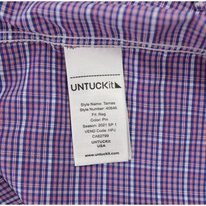 UNTUCKit Tamas Button Down Shirt Men's Medium Pink Blue Plaid Nylon Stretch
