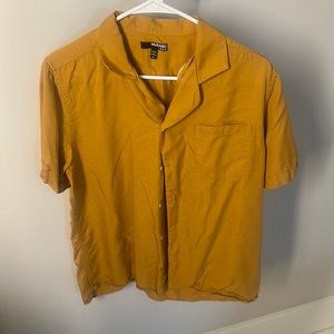 This Murano shirt is a slim fit, men’s size large. It is a machine wash, warm with like colors tumble, dry low. It is 100% Lyocell. It is in good condition and comes from a smoke free home.