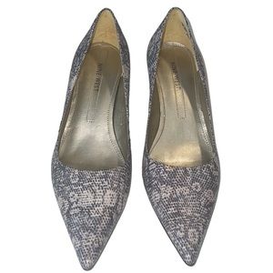 Nine West Abigayles Leather Snakeskin Print Gray, Gold Ivory Pumps Size 7.5