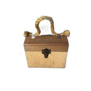 Straight from my closet at my parents is this FUN, RETRO, AUTHENTIC cork and wood purse. The bottom 3/4 is cork and the cover is wood with jute handle. It is stamped Severin on the inside cover and is lined in gold felt. The bottom has four metal feet and is has a clasp lock. It measures 6 3/4 wide by 5 3/4 tall.