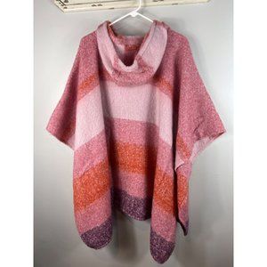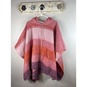 Time & Tru Women’s Alpine Poncho w/ Hood Pink Orange Purple Stripes Shawl Medium