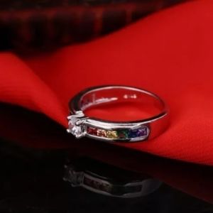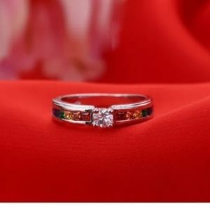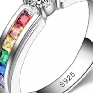 New 925 Sterling Silver Ring Colorful Tension Setting Ring Sizes: 6, 7, 8 NWT