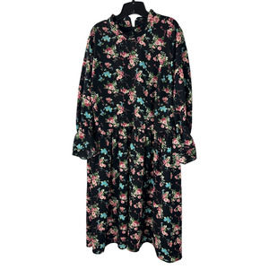 Modcloth Floral Print Mock Neck LS Dress Women's Plus Size 4X *Belt NOT Included