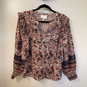 Cleobella Women Blouse V-neck Boho Cotton Organic Oversized Top Sz XS