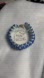 This bracelet is made with white glass pearls and Czech crystal bicones and seed beads with a heart shaped toggle clasp. Gina’s Beadiful Accessories