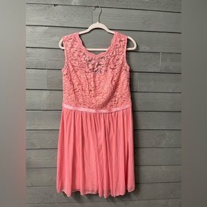 Worn Once David’s Bridal Coral Peach Lace Top Dress Sz 14 Prom Bridesmaid Formal