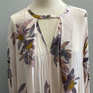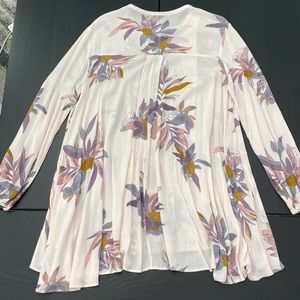 Free People Tree Swing Dress in Pearl in size Medium. No visible signs of wear or use. No flaws. Shapeless Silhouette. Capped Bell Sleeves. Front Pleating. Keyhole Neckline With Buttonboho, Oversized Tunic Or Dress Style. Two Pockets! 100% Rayon. Measurements shown in photos.