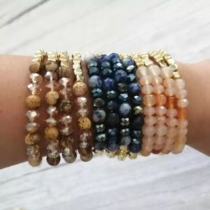 Boho stacking layering bracelet set of 4 in natural gray stone & gold beads NEW