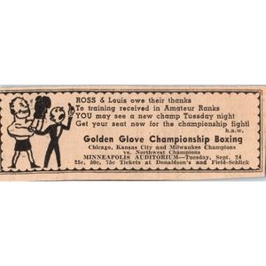 Golden Glove Boxing Minneapolis Auditorium 1935 Minneapolis Journal Advertisement AE7-H2