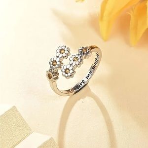 Sterling Silver Sunflower “You Are My Sunshine” Adjustable Ring