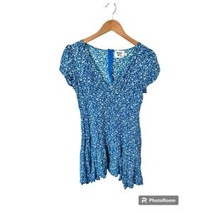 tags: spring, floral, mini, blue dress, lunch, brunch, cute, seasonal, summer, girlie